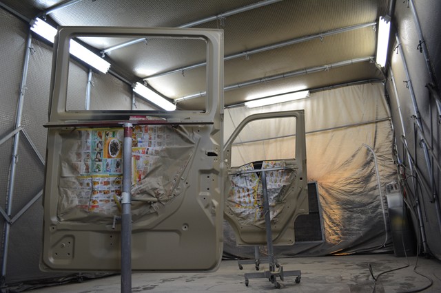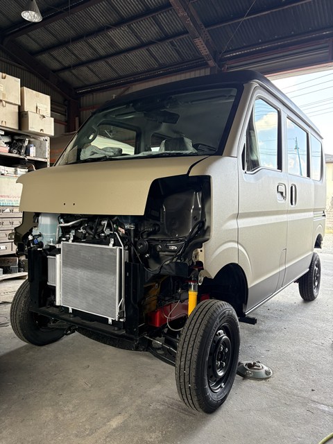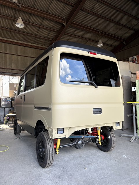 エブリイ4インチアップコンプリートカー塗装工場にて全塗装完了これからサービス工場に